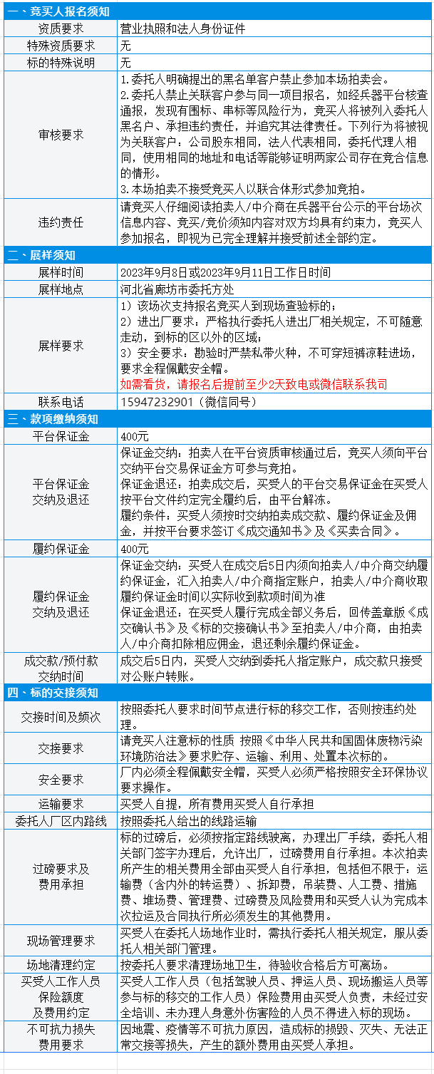 有意竞买者需开通中国兵器工业集团采购电子商务平台帐号进行报名及缴纳线上保证金。所竞价标的:密封Ⅲ检测台,起拍价3200元/吨(有保留价),预估重量1吨。