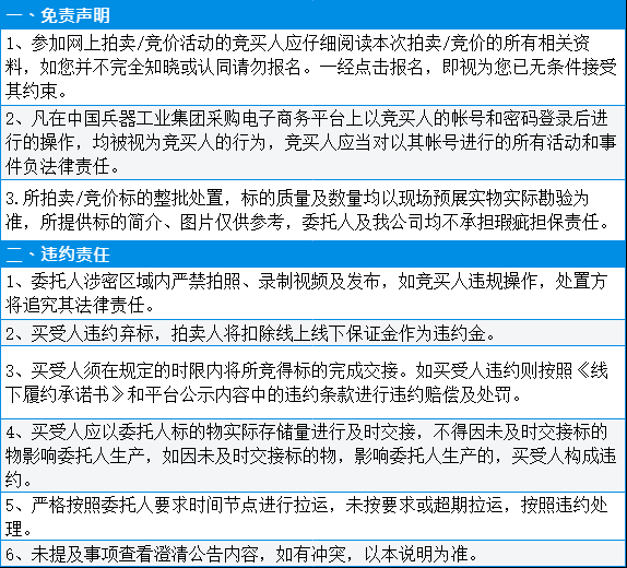 有意竞买者需开通中国兵器工业集团采购电子商务平台帐号进行报名及缴纳线上保证金。所竞价标的: