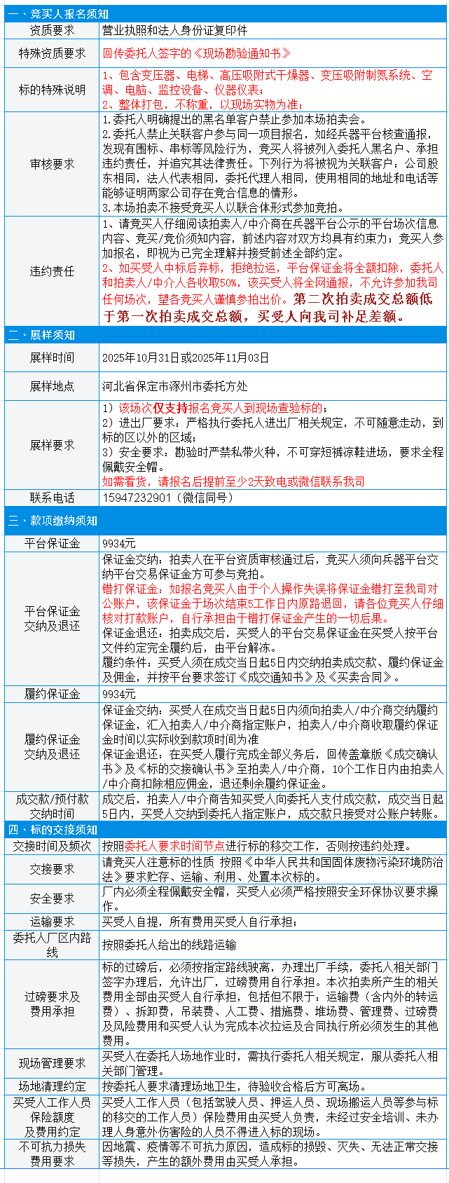 受企业委托,我公司定于2025年11月4日 在中国兵器工业集团采购电子商务平台(http://www.norincogroup-ebuy.com/)进行公开网络拍卖。