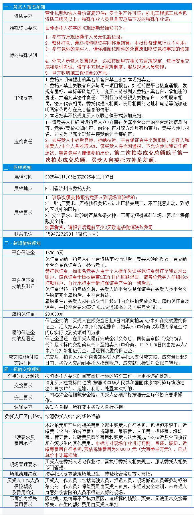 受企业委托,我公司定于2025年11月10日 在中国兵器工业集团采购电子商务平台(http://www.norincogroup-ebuy.com/)进行公开网络拍卖。